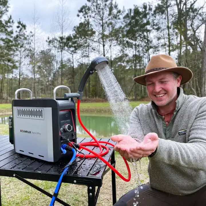 With a portable shower with heater, even remote camps feel more comfortable—warm water and an easy rinse right where the day ends.