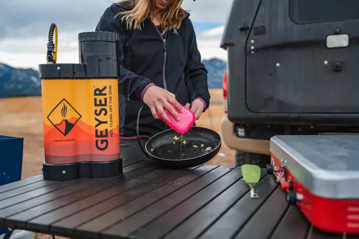 For rigs without built-in plumbing, the Geyser can mimic some of the functionality of a small hot water system without requiring permanent installation. When paired with a steady power source like a Goal Zero Yeti Power Station, it becomes a plug-and-play solution that can move from inside the van to an outdoor camp kitchen as needed.
