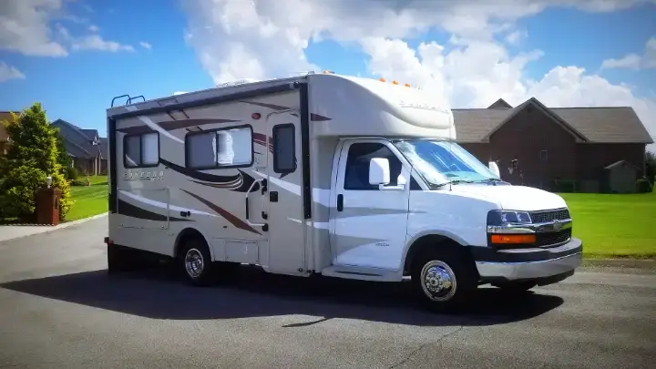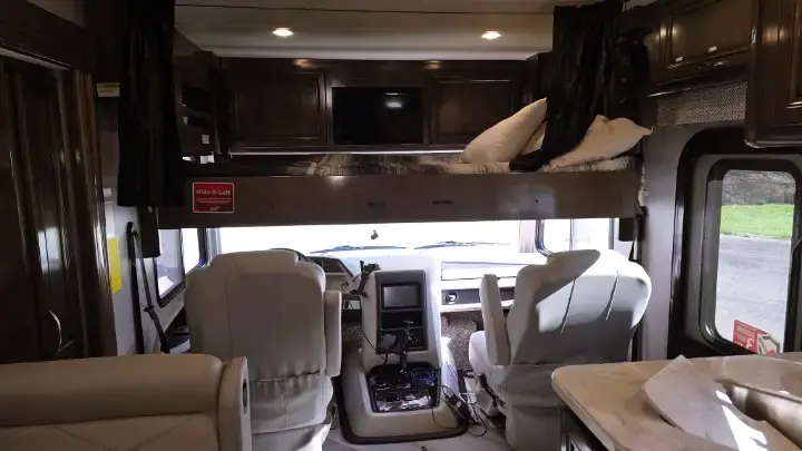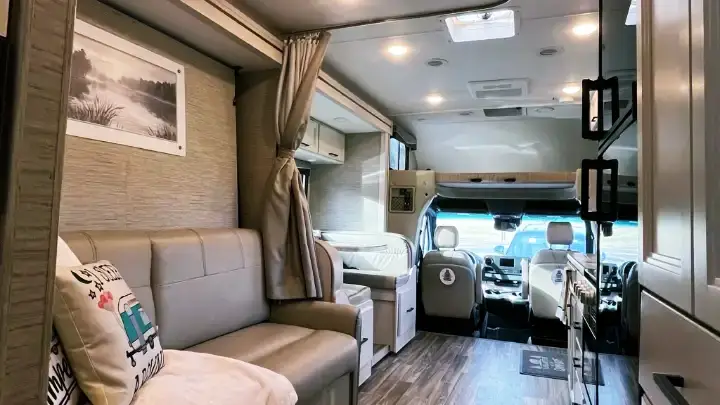 This Class C motorhome balances drivability with homey luxury. With sleeping space for six, a queen bed, a convertible dinette, and a fully equipped kitchen, it’s ideal for families who love the outdoors but don’t want to rough it.