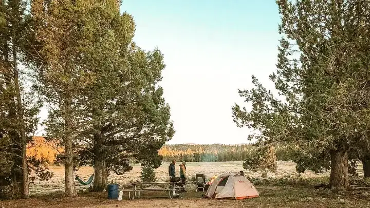 Holcomb Valley Ranch is the perfect cool-air retreat after a hot Joshua Tree National Park camping day, with wide meadows, tall pines, and roomy tent sites.
