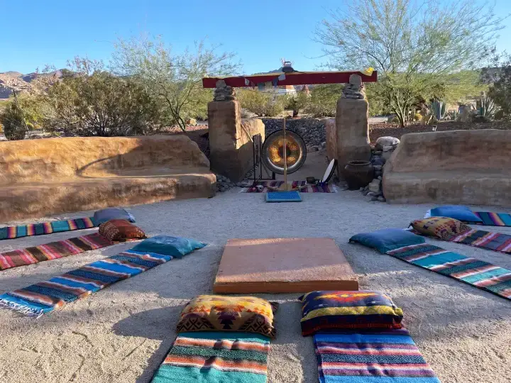 Unplug, stretch out on colorful blankets, and sink into a cacao ceremony and sound bath under the desert sky.